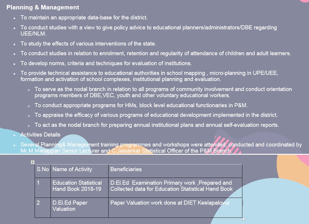 Planning & Management - Department